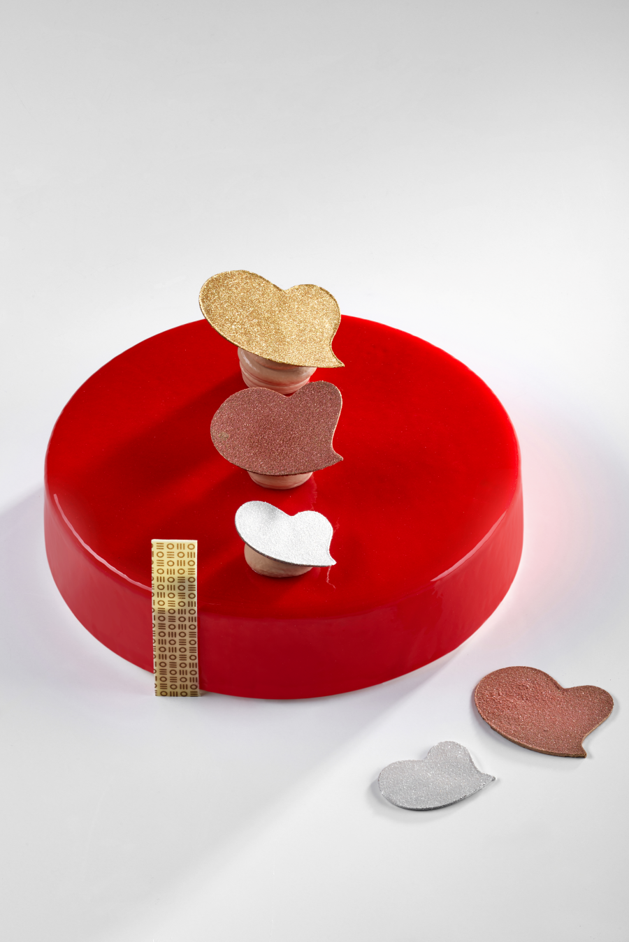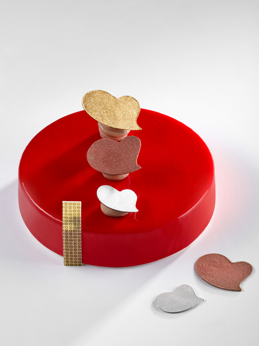 Terminare l'inserto colando 150 g di gelatina al tè di rose. Abbattere.